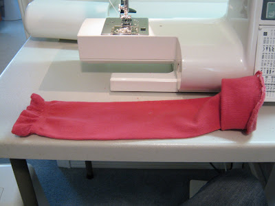 Then I finished off the sleeves and the neckline by cutting a 3/4" strip of fabric and folding it in half. Then I sandwiched the edge of the neckline/sleeves in between the strip of fabric and sewed it in place.
